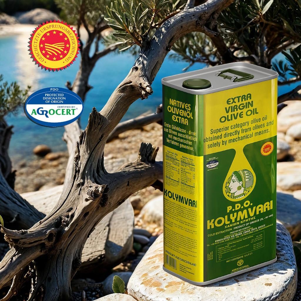 Erleben Sie das Aroma und die Qualität des Kolymvari Extra Nativ Olivenöls – aus Koroneiki Oliven Kretas mit geschützter Ursprungsbezeichnung (g.U.)
